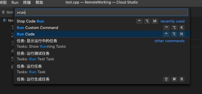 在命令面板里可以找到 VS Code 中所有的操作(包括插件)及对应的快捷键。