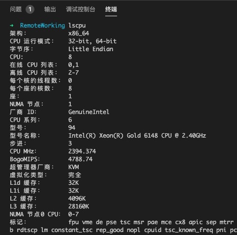 在 Terminal 中,输入 lscpu 可查看 CPU 信息。