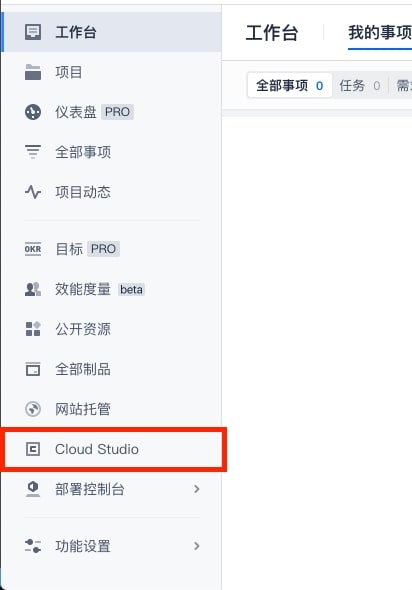 从左侧菜单栏进入「Cloud Studio」,或者从 cloudstudio.net 使用 Coding 账号登陆。